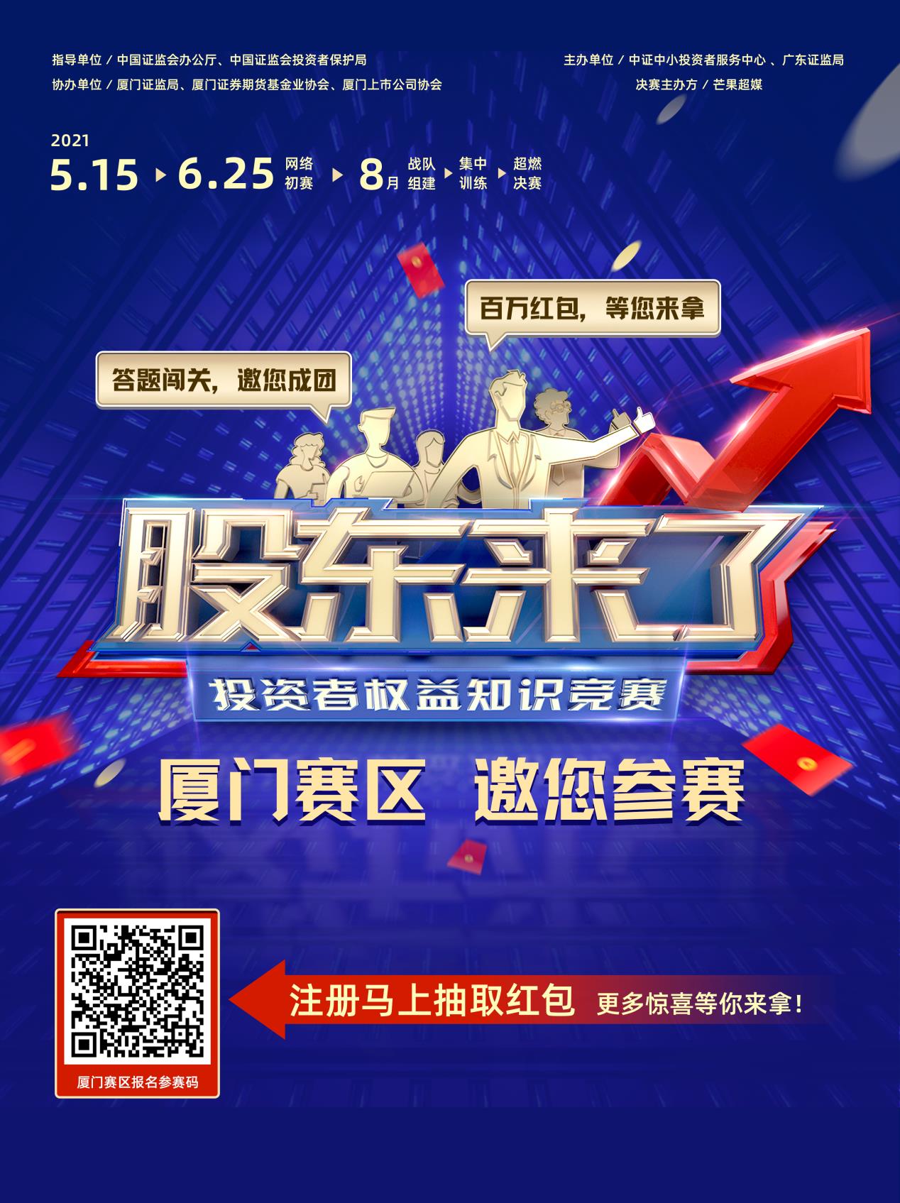 2021年是“十四五”規(guī)劃開局之年,為進一步落實證監(jiān)會黨委關(guān)于資本市場人民性要求和保護投資者合法權(quán)益的職責(zé),在會辦公廳、投保局指導(dǎo)下,投服中心將聯(lián)合廣東、四川、湖北、內(nèi)蒙古、海南、西藏六證監(jiān)局共同舉辦《股東來了》2021投資者權(quán)益知識競賽,面向廣大中小投資者普及權(quán)益知識,示范引領(lǐng)全面知權(quán)、積極行權(quán)、依法維權(quán)。